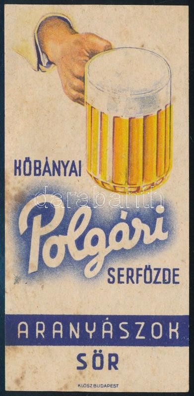Kőbányai Polgári Serfőzde Aranyászok sör számolócédula, Bp., Klösz, fo... https://www.darabanth.com/de/470-Fernauktion/470.0/Kunst-Dokumente-andere-Sammelgebiete/Werbungen~1000003/Kobanyai-Polgari-Serfozde-Aranyaszok-sor-szamolocedula-Bp-Klosz-foltos~II3184372