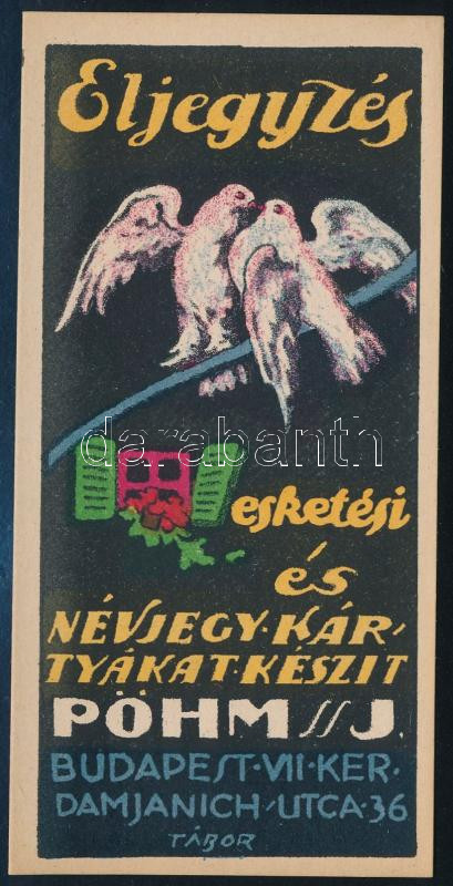 cca 1928 Pöhm J. Nyomda különböző alkalmú kártyákat reklámozó számolóc... https://www.darabanth.com/de/470-Fernauktion/470.0/Kunst-Dokumente-andere-Sammelgebiete/Werbungen~1000003/cca-1928-Pohm-J-Nyomda-kulonbozo-alkalmu-kartyakat-reklamozo-szamolocedula-szign-Tabor-szep~II3183772