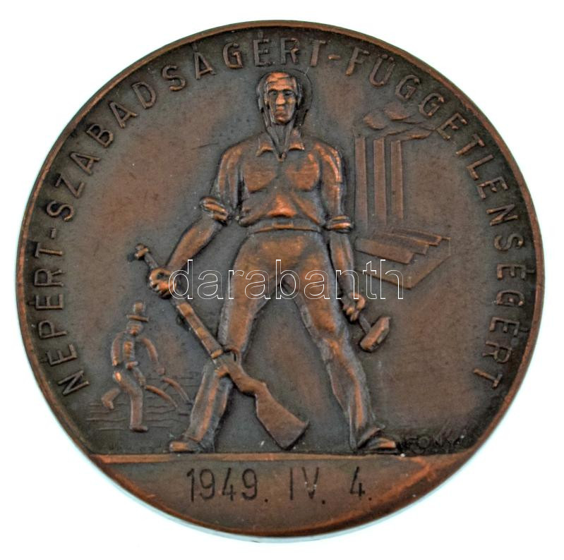 Fonyó Márton (?-?) / Lőrincz István (1901-1985) 1948. "Magyar Szabadságharcos Szövetség / Népért-Szabadságért-Függetlenségért" bronz emlékérem "1949.IV.4." gravírozással (39mm) T:XF