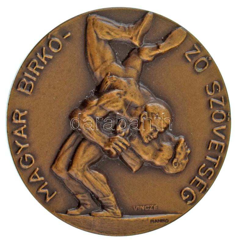 Beschreibung: Vincze Dénes (1924-1972) / Manno Miltiadesz (1879-1935) DN "Magyar Birkózó Szövetség" bronz emlékérem (61mm) T:AU