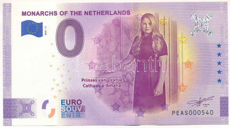 Netherlands 2020. 0 Euro souvenir banknote "Monarchs of the Netherlands - Prinses van Oranje Catharina-Amalia" C:UNC