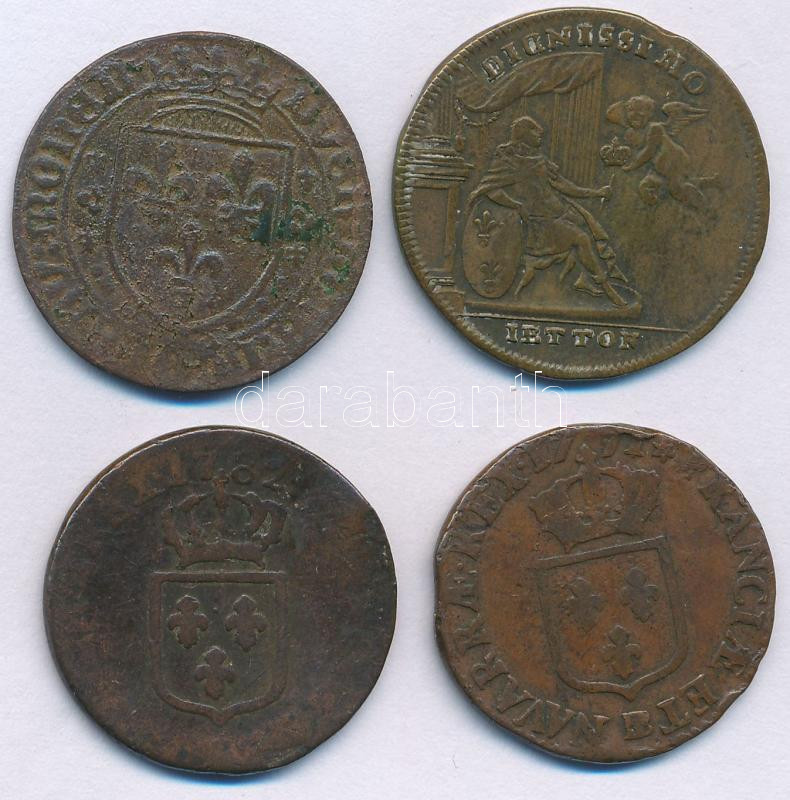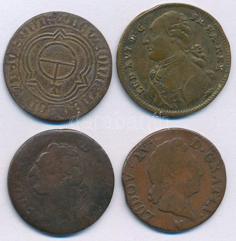 Franciaország 1771. 1/2S Cu "XV. Lajos" + 1782. 1/2S Cu "XVI. Lajos" + 2db Cu zseton T:VF-VG