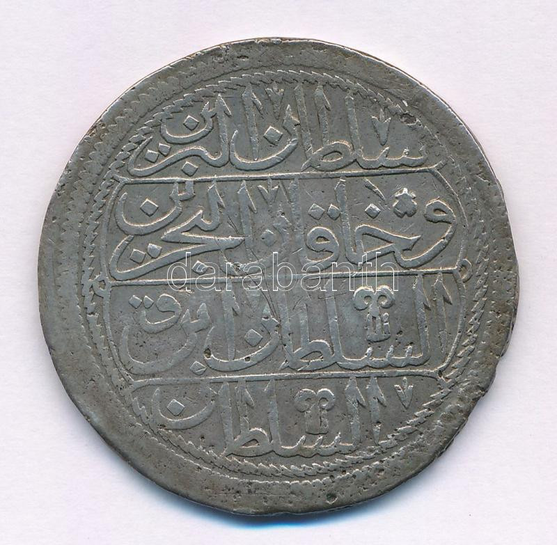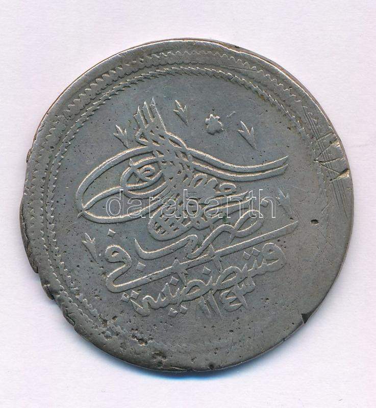 Oszmán Birodalom 1731 (1143) Kurus Ag "I. Mahmud" (23,73g) T:VF patina, korrózió Ottoman Empire 1731 (1143) Kurus Ag "Mahmud I" (23,73g) C:VF patina, corrosion Krause KM#210