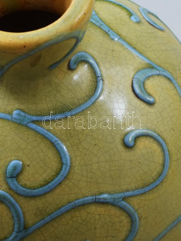 Plasztikus futómintás retro váza. Jelzés nélkül, erősen repedezett máz... https://www.darabanth.com/de/470-Fernauktion/470.0/Porzellan-Keramik-Glass/Keramiken~500006/Plasztikus-futomintas-retro-vaza-Jelzes-nelkul-erosen-repedezett-mazzal-d-18-cm-m-15-cm~II3160476