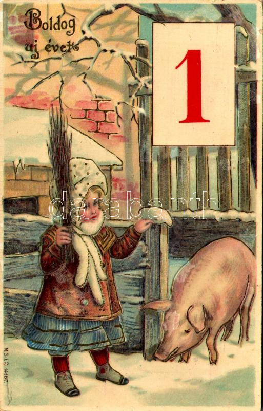 1911 Boldog Újévet / New Year greeting art postcard with girl and pig.... https://www.darabanth.com/de/471-Fernauktion/471.0/Ansichtskarten/GruC39Fkarten-Feste~2000085/1911-Boldog-Ujevet-New-Year-greeting-art-postcard-with-girl-and-pig-litho-EK~II3185094