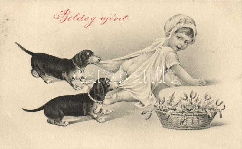 New Year, dogs, baby, humour https://www.darabanth.com/de/471-Fernauktion/471.0/Ansichtskarten/GruC39Fkarten-Feste~2000085/New-Year-dogs-baby-humour~II1218870