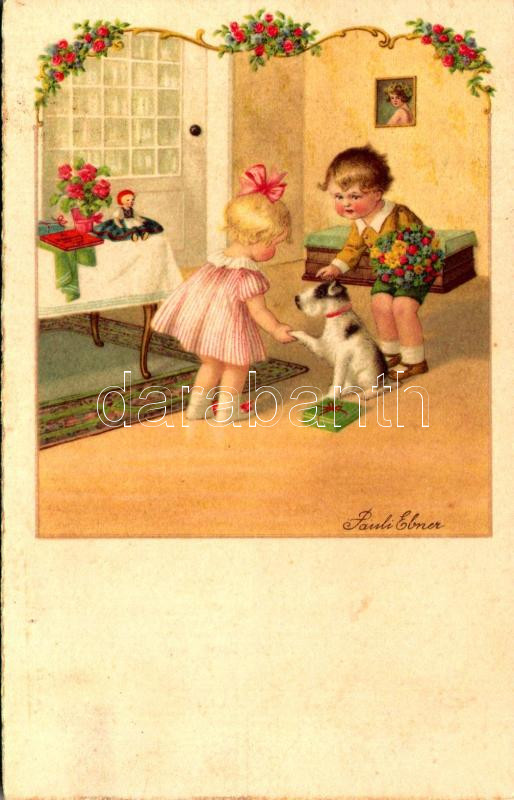 Children art postcard with dog s: Pauli Ebner (EB) https://www.darabanth.com/de/471-Fernauktion/471.0/Ansichtskarten/Kunstlerkarten~2000051/Children-art-postcard-with-dog-s-Pauli-Ebner-EB~II3185083