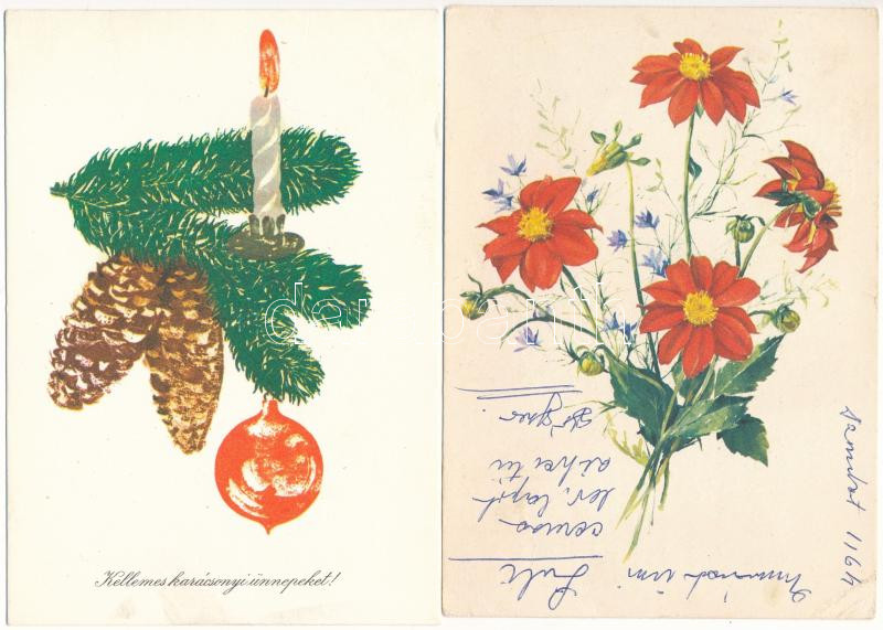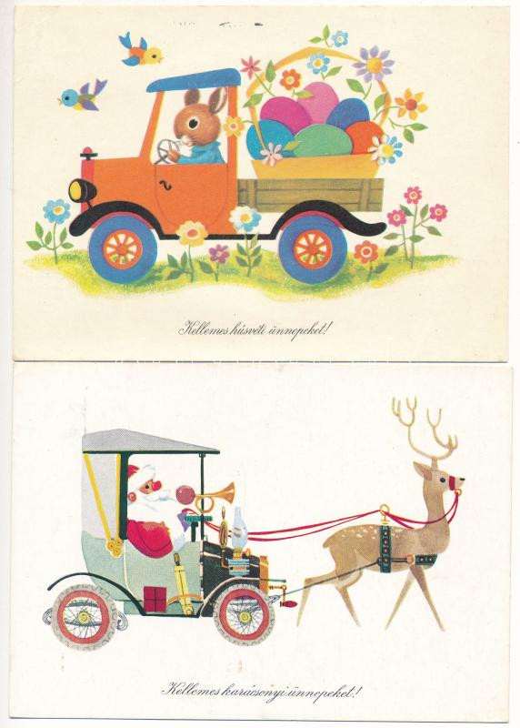 12 db MODERN magyar retro grafikai üdvözlő képeslap vegyes minőségben. Képzőművészeti Alap / 12 modern Hungarian retro graphic greeting postcards in mixed quality