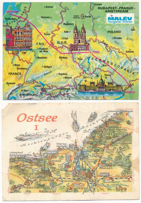 Beschreibung: 21 db MODERN magyar és külföldi térképes képeslap / 21 modern Hungarian and others map postcards