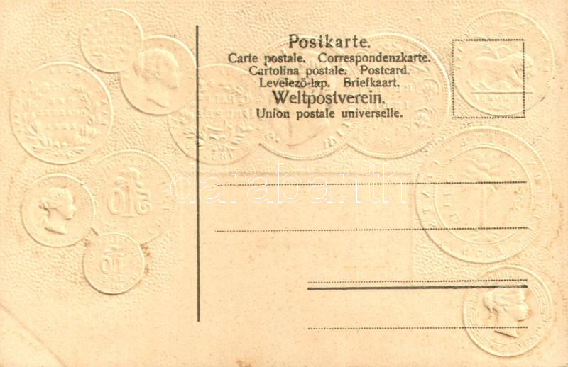 Britisch indisches Kaiserreich und Ceylon. Münzenkarte und Nationalflagge / British India and Ceylon (Sri Lanka) - set of coins, currency exchange chart and flag. Emb. litho (lyuk / pinhole)