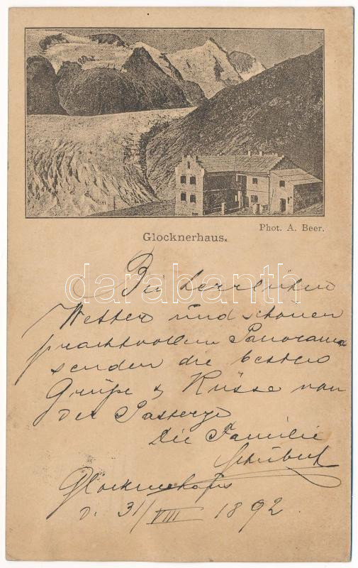 1892 (Vorläufer!!!) Großglockner, Glocknerhaus. Phot. A. Beer (fa) https://www.darabanth.com/de/471-Fernauktion/471.0/Ansichtskarten/Osterreich~2000037/1892-Vorlaufer-GroC39Fglockner-Glocknerhaus-Phot-A-Beer-fa~II3188818