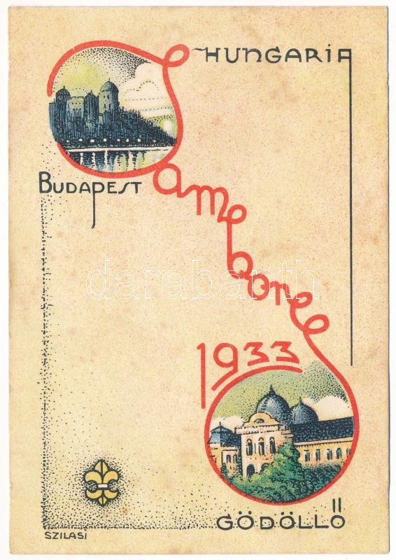 1933 Budapest-Gödöllő, Cserkész Jamboree. Kiadja a Magyar Cserkészszövetség. Klösz Gy. és Fia / Hungarian boy scout jamboree art postcard s: Szilasi (fl)