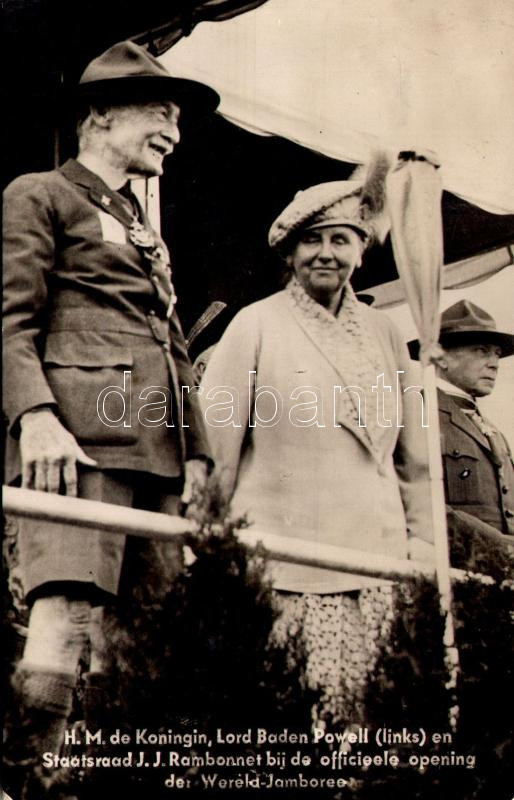 1937 H.M. de Koningin, Lord Baden Powell (links) en Staatsraad J.J. Ra... https://www.darabanth.com/de/471-Fernauktion/471.0/Ansichtskarten/Pfadfinder~2000020/1937-HM-de-Koningin-Lord-Baden-Powell-links-en-Staatsraad-JJ-Rambonnet-bij-de-officieele-open~II3189655