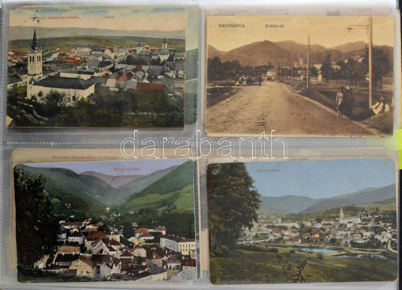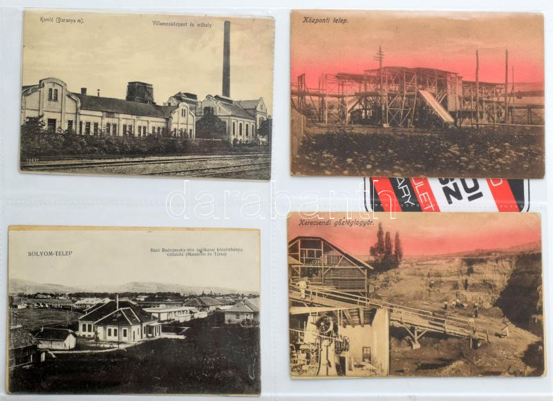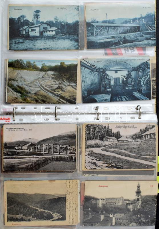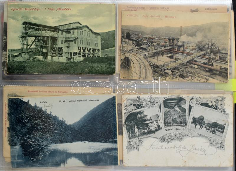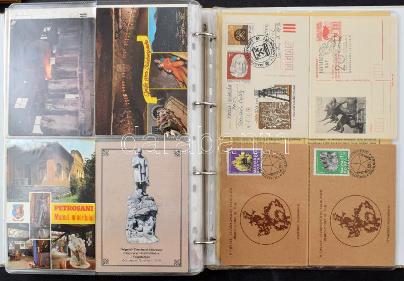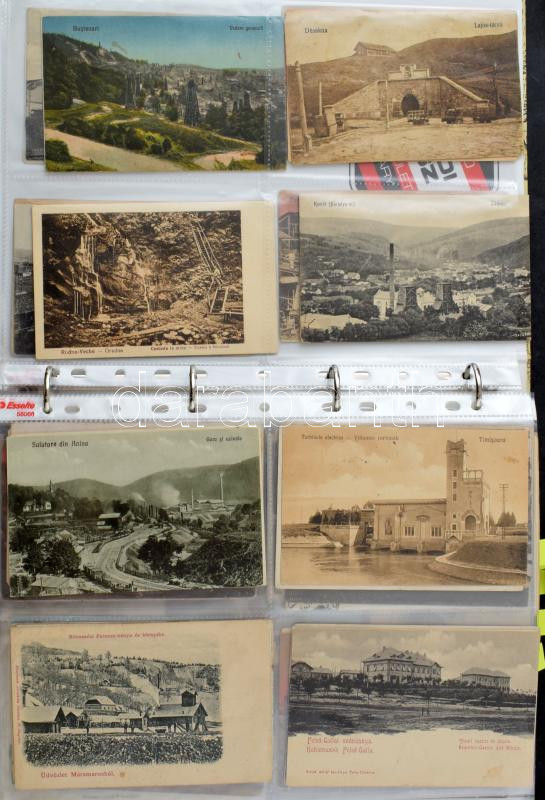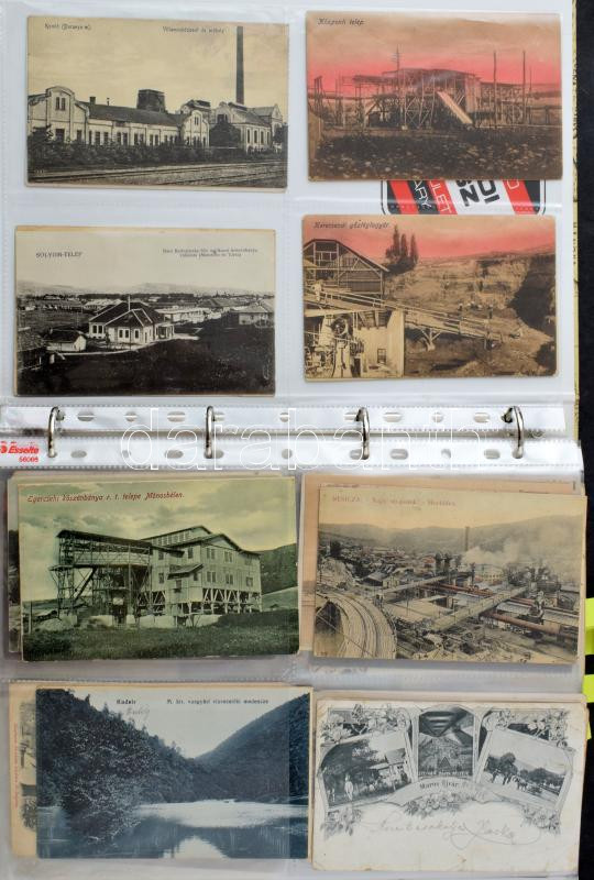 BÁNYÁSZAT - Kb. 193 db RÉGI és MODERN képeslap a Magyar Királyság területéről albumba rendezve + kis alakú fotók, újságkivágások, feliratok, borítékok, bélyegzések. Rendkívül érdekes gyűjtemény sok régi bánya képeslappal és fotóval valamint modern fekete-fehér lapokkal / MINING INDUSTRY - Cca. 193 pre-1945 and modern postcards from the Kingdom of Hungary in album, mines and miners with many small sized photos, envelopes, newspaper articles, texts - An extremely rare and interesting collection