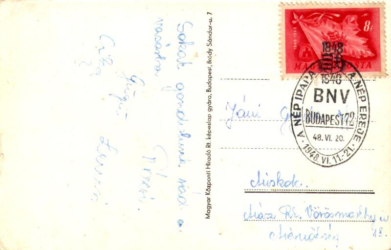 1948 Május 1. Együtt ünnepelnek a hároméves terv összes dolgozói / Hungarian communist propaganda + "1948 A Nép Ipara A Nép Ereje BNV" So. Stpl. (kis szakadás / small tear)
