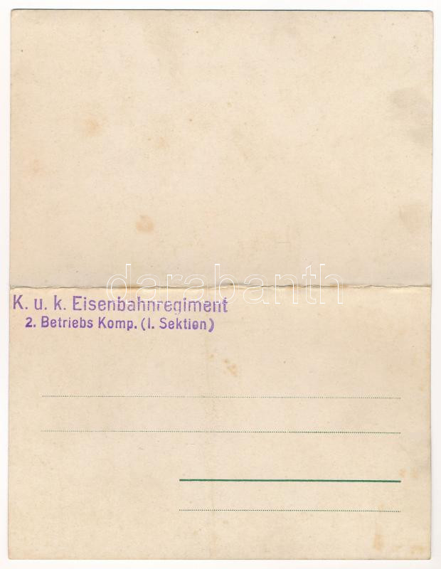 Beschreibung: Vatra Dornei, Dornavátra, Bad Dorna-Watra (Bukovina, Bucovina, Bukowina); Kurpark mit Falkenhayn-Quelle / Izvorul Falkenhayn / spa park with mineral water spring. 2-tiled folding panoramacard + "K.u.K. Eisenbahnregiment 2. Betriebs Komp. (I. Sektion)" (fl)
