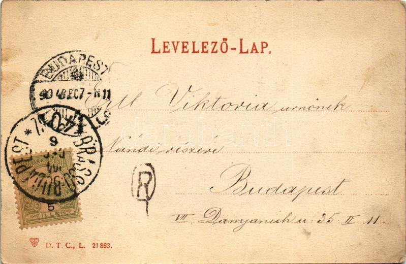 1904 Kolozsvár, Cluj; Mátyás király tér, New York palota, Tauffer Dezső, Schuster Emil üzlete / palace, square, shops + "BRASSÓ - BUDAPEST 40. SZ." vasúti mozgóposta bélyegző (fa)