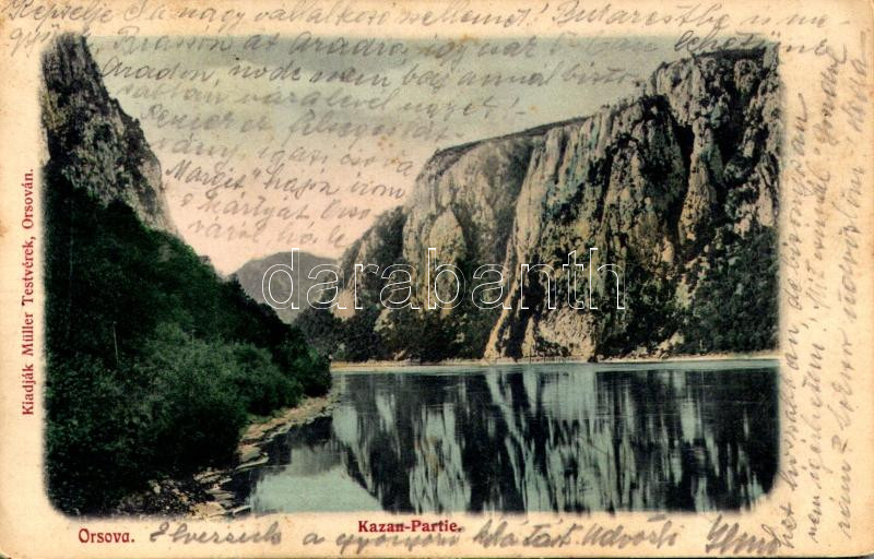1906 Orsova, Kazan-Partie / Cazane / Kazán-szoros. Müller Testvérek ki... https://www.darabanth.com/de/471-Fernauktion/471.0/Ansichtskarten/Siebenburgen~2000006/1906-Orsova-Kazan-Partie-Cazane-Kazan-szoros-Muller-Testverek-kiadasa-gorge-fl~II3186180