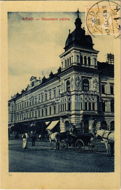 1912 Arad, Neumann palota / palace, street view (EK) https://www.darabanth.com/de/471-Fernauktion/471.0/Ansichtskarten/Siebenburgen~2000006/1912-Arad-Neumann-palota-palace-street-view-EK~II2999183