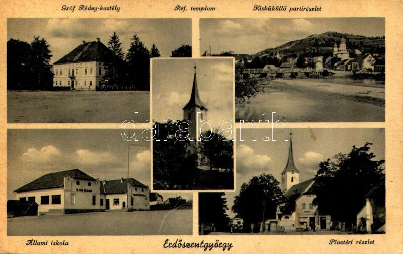 1941 Erdőszentgyörgy, Sangeorgiu de Padure; Gróf Rédey kastély, Református templom, Kisküküllő part, Állami iskola, Piac tér / castle, church, school, square, Tarnava Mica River
