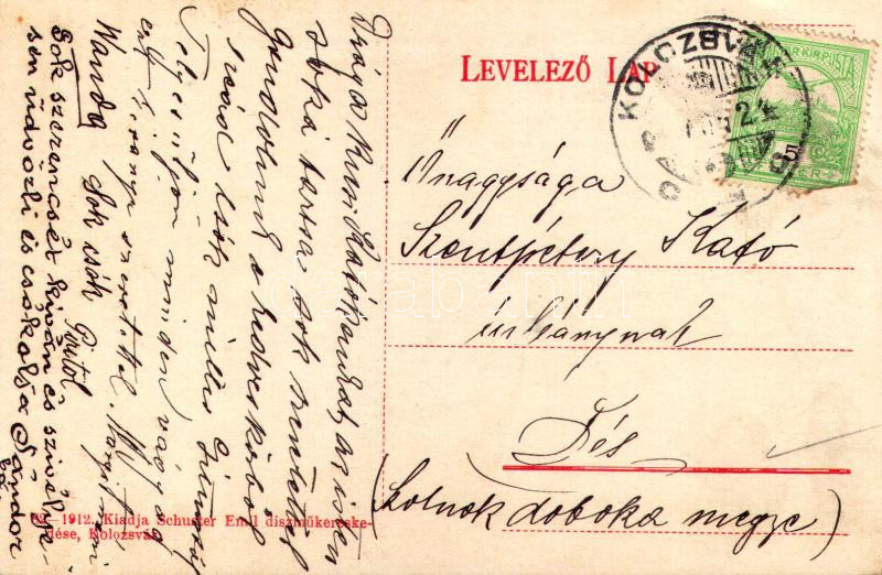 Beschreibung: Kolozsvár, Cluj; M. kir. Ferenc József tudományos egyetem könyvtár a Szent György szoborral. Schuster Emil kiadása / university library, monument (EK)