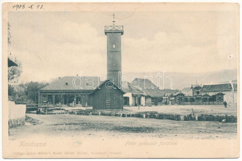 Kovászna, Covasna; Baia Balta dracului / Fő tér és Pokolsár fürdő. Alf... https://www.darabanth.com/de/471-Fernauktion/471.0/Ansichtskarten/Siebenburgen~2000006/Kovaszna-Covasna-Baia-Balta-dracului-Fo-ter-es-Pokolsar-furdo-Alfred-Tartler-kiadasa-~II2962502