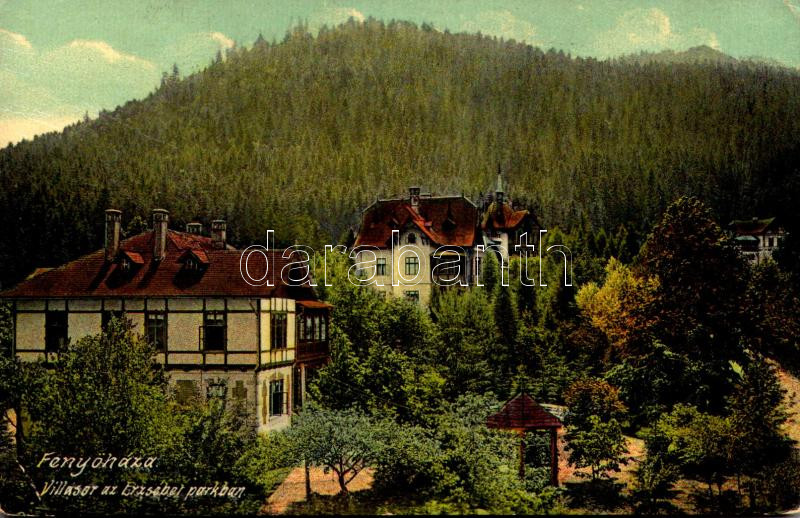 1912 Fenyőháza, Lubochna; Villasor az Erzsébet parkban, pavilon. Kiadj... https://www.darabanth.com/de/471-Fernauktion/471.0/Ansichtskarten/Slowakei~2000007/1912-Fenyohaza-Lubochna-Villasor-az-Erzsebet-parkban-pavilon-Kiadja-Holczmann-Izidor-villas~II3188598