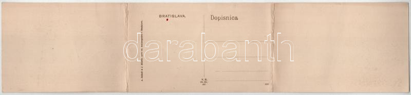Beschreibung: Pozsony, Pressburg, Bratislava; 3-részes kinyitható panorámalap / 3-tiled folding panoramacard (kis szakadás / small tear)