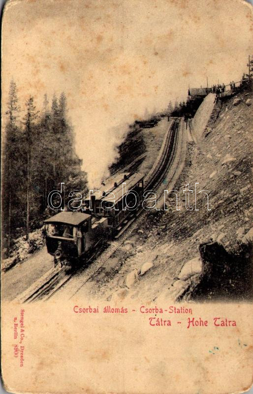 Tátra, Magas-Tátra, Vysoké Tatry; Csorbatói fogaskerekű vasútállomás, ... https://www.darabanth.com/de/471-Fernauktion/471.0/Ansichtskarten/Slowakei~2000007/Tatra-Magas-Tatra-Vysoke-Tatry-Csorbatoi-fogaskereku-vasutallomas-vonat-gozmozdony-S~II3185213