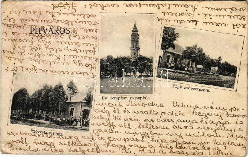 1921 Pitvaros, Evangélikus templom és paplak, Szövetkezeti ház, fogyas... https://www.darabanth.com/de/471-Fernauktion/471.0/Ansichtskarten/Ungarn~2000005/1921-Pitvaros-Evangelikus-templom-es-paplak-Szovetkezeti-haz-fogyasztasi-szovetkezet-uzlet~II3118584