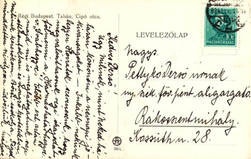 1934 Budapest I. Tabán, Cipő utca. R.J.E. 560. (EK) https://www.darabanth.com/de/471-Fernauktion/471.0/Ansichtskarten/Ungarn~2000005/1934-Budapest-I-Taban-Cipo-utca-RJE-560-EK~II3187627