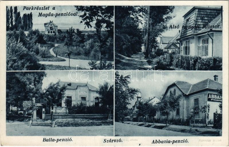 Beschreibung: Balatonszárszó, Szárszó; park, Magda-, Balla- és Abbazia-penzió, Alsó nyugati villasor