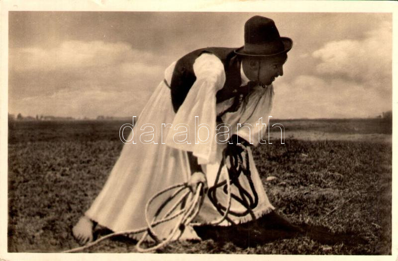 Beschreibung: Bugac (Kecskemét), Pányvavető csikós, magyar folklór (kis szakadás / small tear)