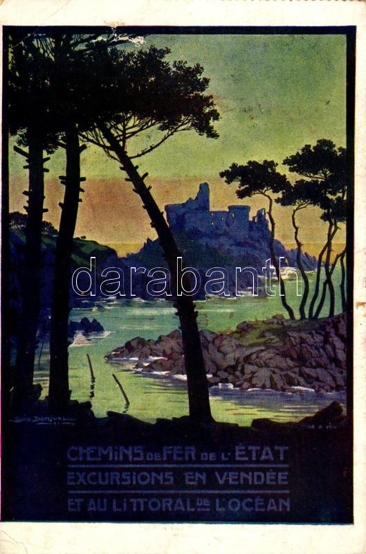 1935 Chemins de Fer de l'État Excursions en Vendée et au Littoral de L'Ocean / Francia vasúti turisztikai reklám / French State Railways touristic advertisement s: Geo Dorival (fl)