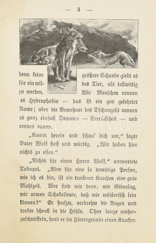 Rudyard Kipling: Im Dschungel. Autorisierte Uebertragung aus dem Englischen des - - von Curt Abel-Musgrave. Die Welt der Fahrten und Abenteuer Band VI. Freiburg, é.n. (cca 1905-1910), Friedrich Ernst Fehsenfeld, VI+(2)+344+(4) p. Szövegközti és egészoldalas illusztrációkkal. Német nyelven. Kiadói ezüstözött, festett egészvászon-kötés, kissé kopott borítóval.
