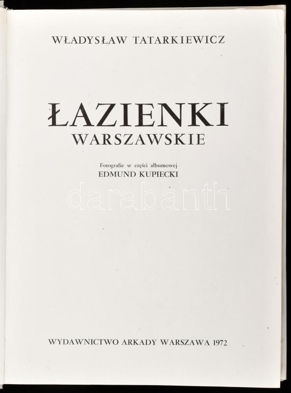 Wladyslaw Tatarkiewicz: Lazienki Warszawskie. Varsó, 1972. Wydawnictwo... https://www.darabanth.com/de/471-Fernauktion/471.0/Bucher/Bucher-Andere-Sprachen~1000033/Wladyslaw-Tatarkiewicz-Lazienki-Warszawskie-Varso-1972-Wydawnictwo-Arkady-Kiadoi-egeszvaszo~II3049685