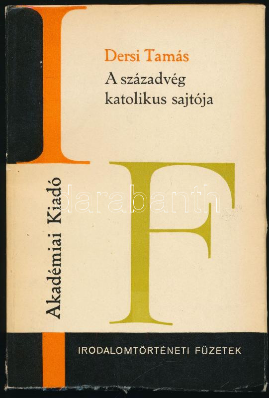 Dersi Tamás: A századvég katolikus sajtója. A szerző, Dersi Tamás (1929-1975) újságíró, kritikus által Kolek Vera újságíró, a rádió riportere részére DEDIKÁLT! Bp., 1973, Akadémiai. Kiadói papírkötés, gerincen apró javított szakadással.