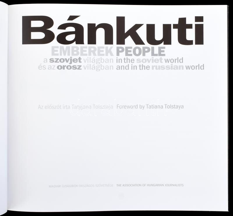 Bánkuti András: Emberek a szovjet világban és az orosz világban. / People in the Soviet World and in the Russian World. Tatyjana Tolsztaja előszavával. (Bp., 2007), Magyar Újságírók Országos Szövetsége. Fekete-fehér és színes fotókkal illusztrálva. Magyar és angol nyelven. Kiadói papírkötés.