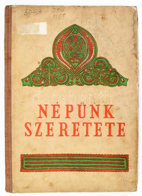Népünk szeretete. Népművészeink ajándékai Rákosi Mátyás 60 éves születésnapjára. Szerk.: Bokor Miklós. (Bp., 1952), KépzÅ‘művészeti Alap. Szövegközti és egészoldalas, fekete-fehér és szÃnes képekkel illusztrálva. Kiadói félvászon-kötés, kissé viseltes, foltos borÃtóval, helyenként sérült, kissé foltos lapokkal, egy kijáró lappal, intézményi bélyegzÅ‘kkel.