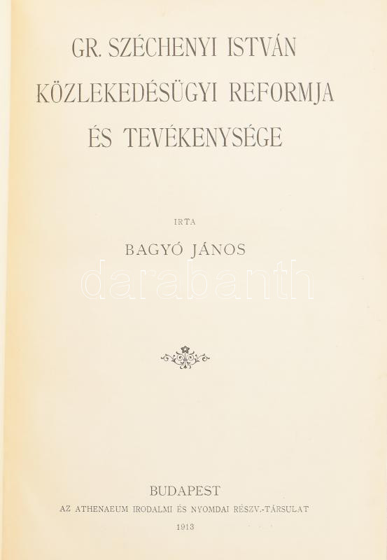 Bagyó János: Gr. Széchenyi István közlekedésügyi reformja és tevékenys... https://www.darabanth.com/de/471-Fernauktion/471.0/Bucher/Bucher-Geschichte~5500006/Bagyo-Janos-Gr-Szechenyi-Istvan-kozlekedesugyi-reformja-es-tevekenysege-Bp-1913-Athe~II3116919