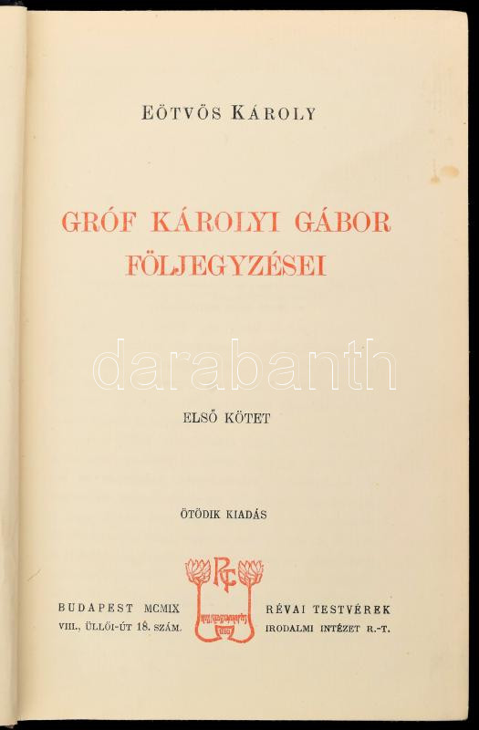Eötvös Károly: Gróf Károlyi Gábor följegyzései I-II. kötet. Bp., 1904,... https://www.darabanth.com/de/471-Fernauktion/471.0/Bucher/Bucher-Geschichte~5500006/Eotvos-Karoly-Grof-Karolyi-Gabor-foljegyzesei-I-II-kotet-Bp-1904-Revai-Testverek-ki~II3175594
