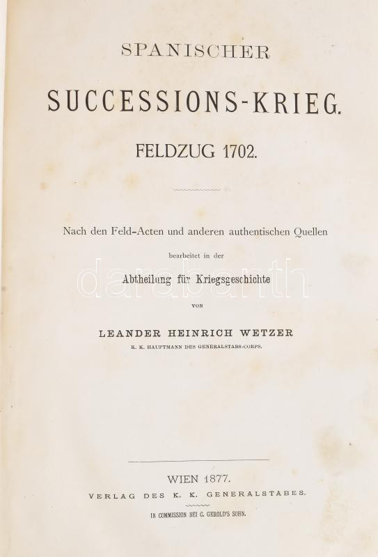 Feldzüge des Prinzen Eugen von Savoyen, I. Serie II., III., IV. V., Band. (4db) Wien, 1876. Verlag des K. K. Generalstabes Korabeli kopott félbőr kötésben. (Savoyai Jebő hadjáratait bemutató monumentális munka négy kötete)