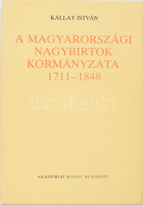 Kállay István: A magyarországi nagybirtok kormányzata 1711-1848. Bp., ... https://www.darabanth.com/de/471-Fernauktion/471.0/Bucher/Bucher-Geschichte~5500006/Kallay-Istvan-A-magyarorszagi-nagybirtok-kormanyzata-1711-1848-Bp-1980-akademiai-egeszvC3~II3190136