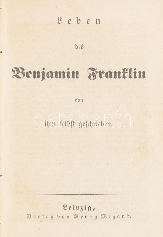 Sporschil, Johann: Geschichte des Kaisers Napoleon. Leipzig, én.,Georg Wigand, 128 p. Hozzákötve: Leben des Benjamin Franklin von ihm selbst geschrieben. Leipzig,én.,Georg Wigand, 158 p. Hozzákötve: Geschichte der Spanischen Inquisition. Geschichte der Hexenprozesse. Für's Volk erzählt. Leipzig,én., Georg Wigand, 157 p. Német nyelven. Kartonált papírkötés, kopott borítóval, a szennylapokon és a tábla belsején jegyzettel. "E. Madarász" névbélyegzéssel.