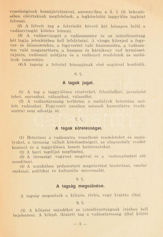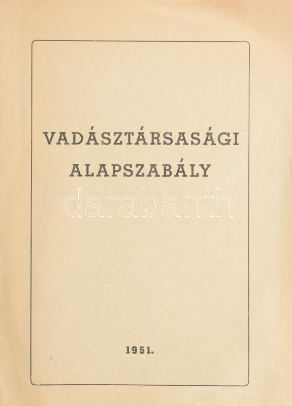 Vadásztársaság alapszabály 1951. Bp., 1951, Merkantil-ny., 10 p. https://www.darabanth.com/de/471-Fernauktion/471.0/Bucher/Bucher-Jagd~1000025/Vadasztarsasag-alapszabaly-1951-Bp-1951-Merkantil-ny-10-p~II3190446