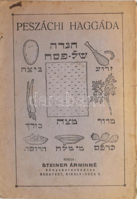 Peszáchi Haggada számos illusztrációval Bp., 1938 Steiner Áráminné. 68... https://www.darabanth.com/de/471-Fernauktion/471.0/Bucher/Bucher-Judaica~1000031/Peszachi-Haggada-szamos-illusztracioval-Bp-1938Steiner-Araminne-68p-Kiadoi-papirborit~II3193369