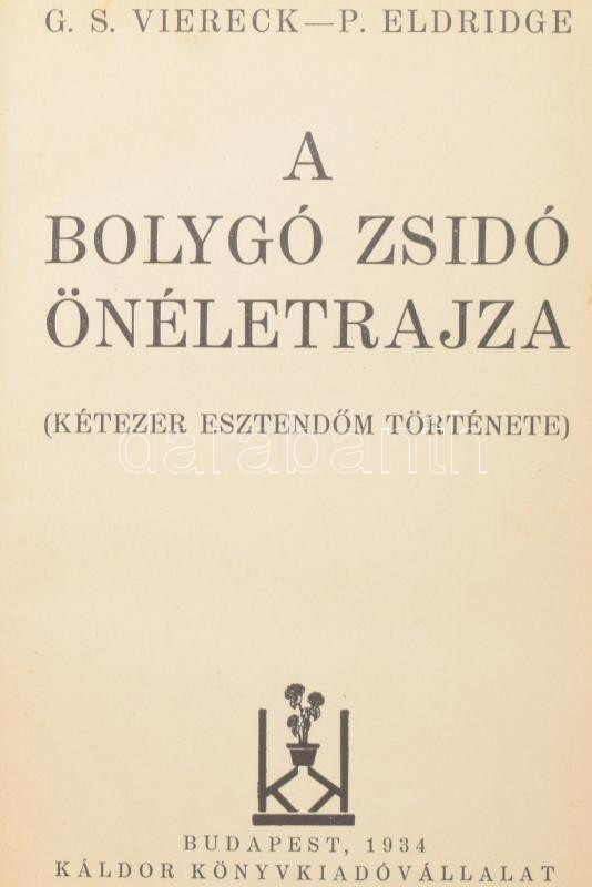 Viereck, G. S. - Eldridge, P.: A bolygó zsidó önéletrajza. (Kétezer es... https://www.darabanth.com/de/471-Fernauktion/471.0/Bucher/Bucher-Judaica~1000031/Viereck-G-S-Eldridge-P-A-bolygo-zsido-oneletrajza-Ketezer-esztendom-tortenete-I~II3192671
