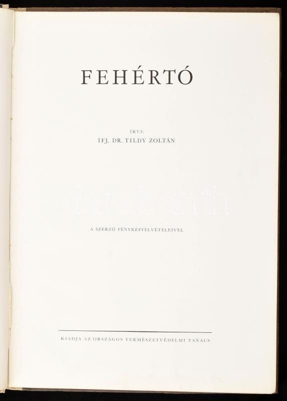 Ifj. Tildy Zoltán: Fehértó. A szerző fotóival. Bp., [1951], Országos Természetvédelmi Tanács, 75 p. Kiadói félvászon-kötés, kissé viseltes, kopott borítóval.
