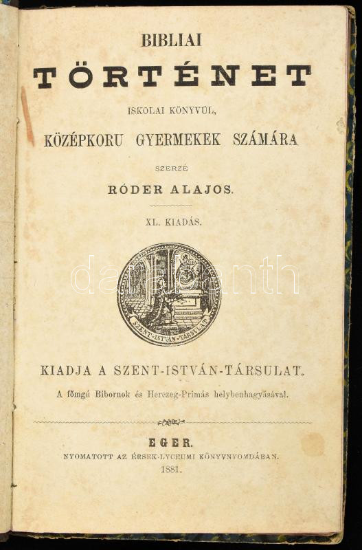 Roder Alajos: Bibliai történet, iskolai könyvül nagyobb gyermekek szám... https://www.darabanth.com/de/471-Fernauktion/471.0/Bucher/Bucher-Religion~5500010/Roder-Alajos-Bibliai-tortenet-iskolai-konyvul-nagyobb-gyermekek-szamara-Pest-1869-Szent-I~II3193036