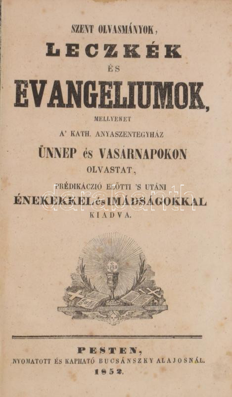 Szent olvasmányok, leczkék és evangeliumok mellyeket a kath. anyaszentegyház ünnep és vasárnapokon olvastat, predikáczió előt. Pest 1852. Bucsánszky. 196p. Korabeli egészvászon kötésben